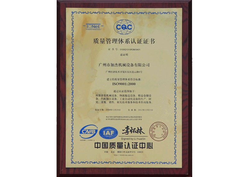 • 質(zhì)量管理體系認證證書